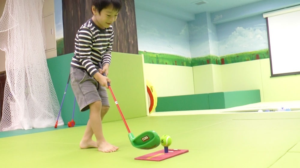 対象年齢は2歳からで、遊びながらゴルフの基本が学べる施設です。